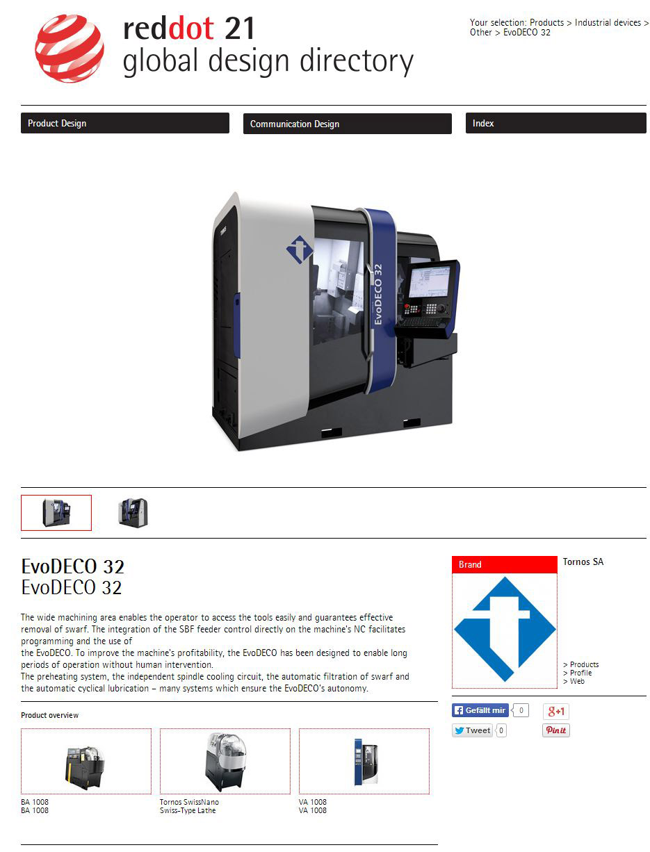 26 Apr Red Dot design award – Tornos EvoDeco 32