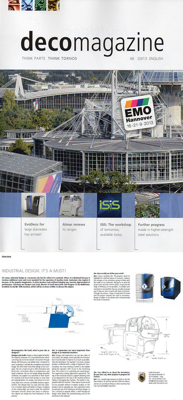 Para muchos el diseño industrial es un mal necesario ; para otros es fundamental. A menudo se lo deja de lado, ya que genera costes extras y no es un elemento esencial para el funcionamiento de una máquina-herramienta. Los clientes también lo relegan a un segundo plano, puesto que la creencia general es que muchas veces genera costes sin aportar prestaciones reales adicionales. Decomag ha entrevistado a Enrique Luis Sardi, director de Sardi Innovation y diseñador de las máquinas MultiSwiss, EvoDeco 32 y BA 1008 que serán presentadas en la EMO para hablar de este tema.